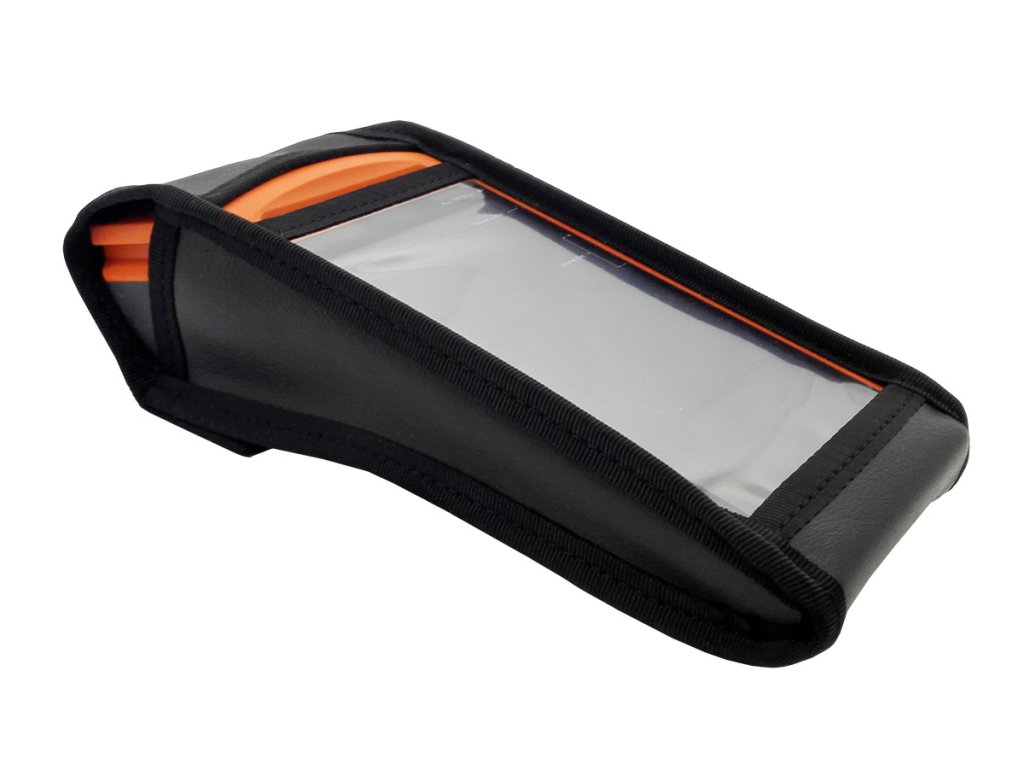- Díky praktickému úchytu na zadní straně je možné pouzdro s terminálem pohodlně držet v ruce.
